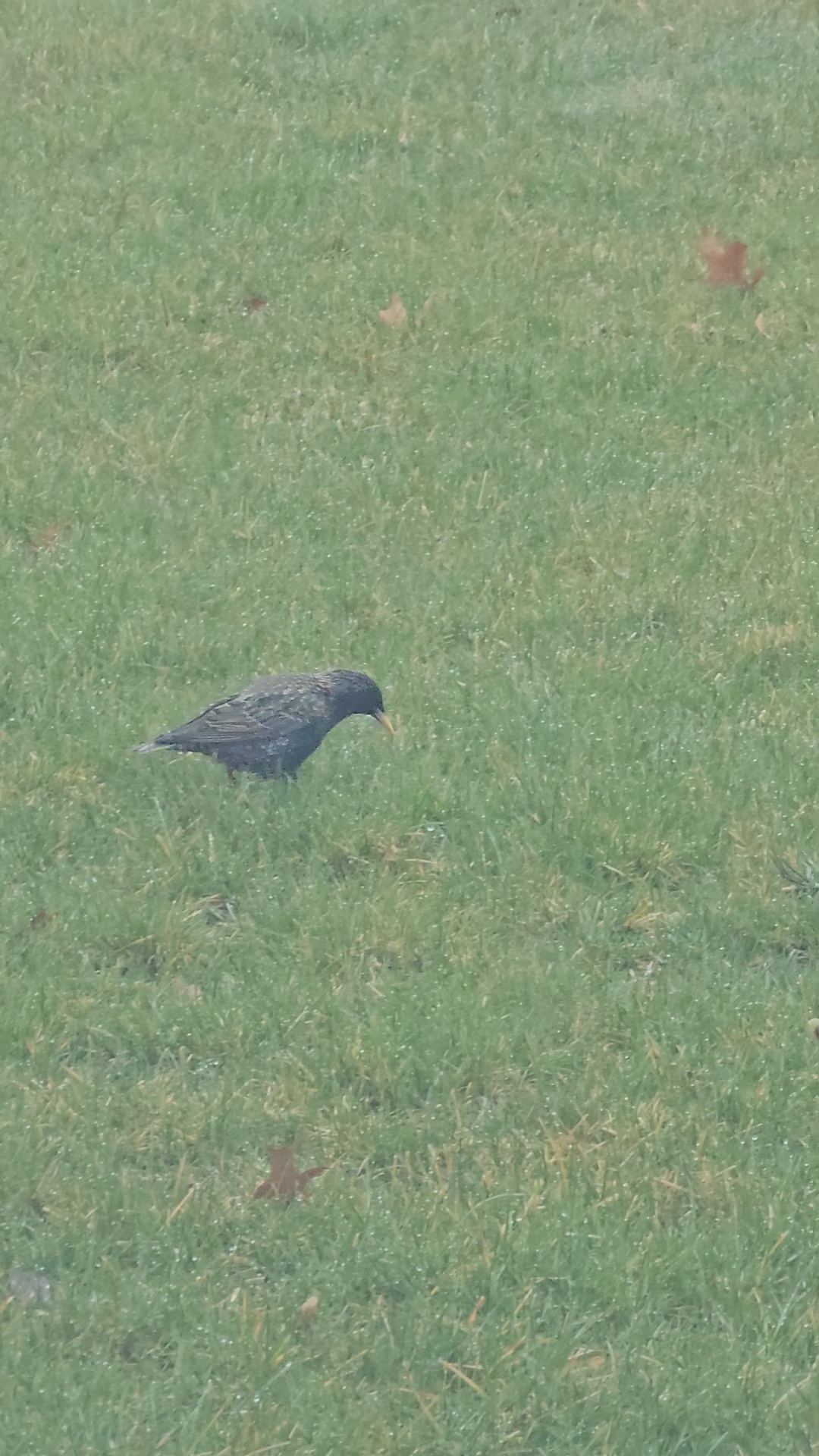 Common Starling, 흰점찌르레기 Starling(흰점찌르레기), 한국명으로 보면 위의 Grackle과 동일하게 찌르레기과 인듯 합니다. 단체로 몰려다니면서 잔디 밭에서 이것 저것 주워먹고 있었습니다.